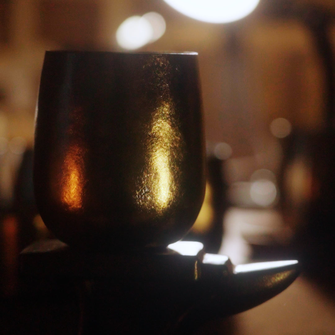Each titanium cup is hand-hammered into its unique form.